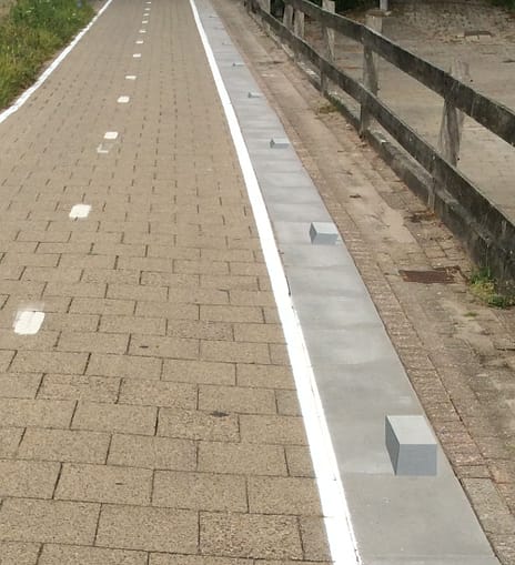 As you may have seen in real life, cyclists tend to take the path of least resistance. That is, they try to keep their distance from all kinds of inconsistencies or objects on or near the road [9]. With this in mind, we asked ourselves: what if this behaviour could be used to prevent cyclists from drifting off a cycle path?