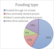 We asked a range of open questions on the effects of the closure on peoples’ research activities. Those with children at home indicated that their research has slowed down considerably or has even stopped completely due to childcare and home-schooling. Also, greater investment in teaching due to the transition to online teaching has meant that people have much less time for research. As one would expect, most people do not have fully-equipped offices at home. Working on a (shared) computer or laptop screen rather than with two screens on a proper desk, with no printing facilities or good office chair is not conducive to research productivity. But not only practical constraints were noted; respondents also suggested that stress, worries about friends and family members, concentration issues and lack of exchange and discussion with colleagues has taken a toll on productivity. Many projects rely on data collected in schools or with patients, all of which have been stopped, which delays projects and appears to make some project plans unrealistic in the proposed time.