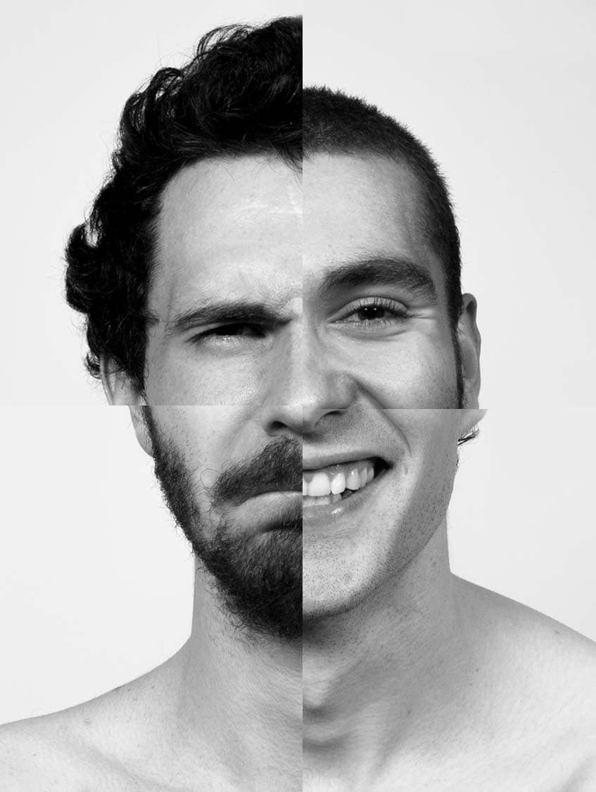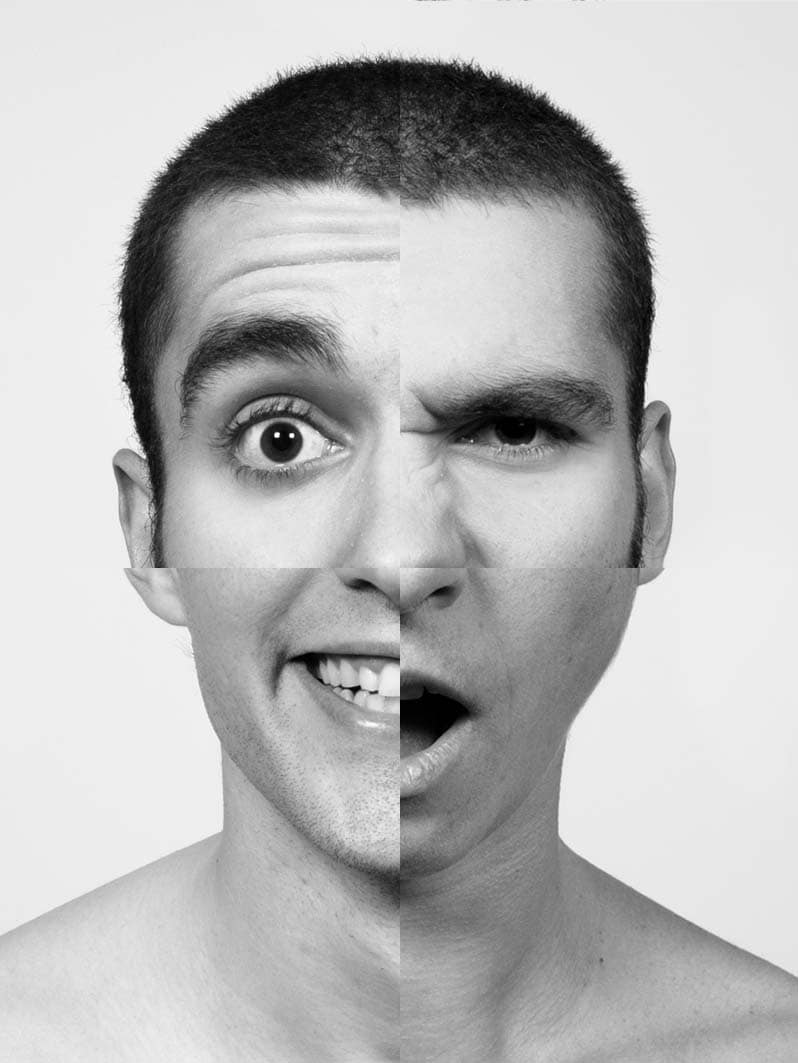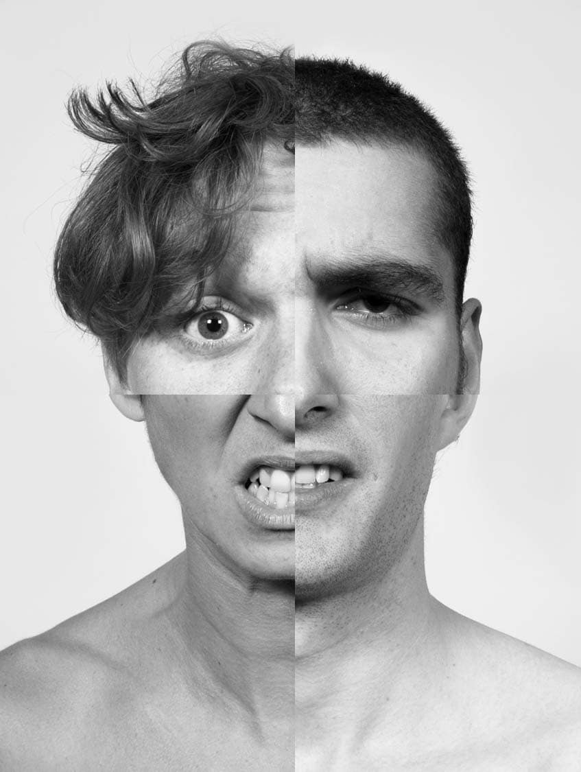 First, I took photos of people’s facial expressions. I used Ekman & Friesen’s six basic emotional expressions as a basis and recorded the different stages of showing one emotional expression. After I took all the pictures, I cut the faces into 4 pieces, so that you only see 1/4 of the facial emotional expression.